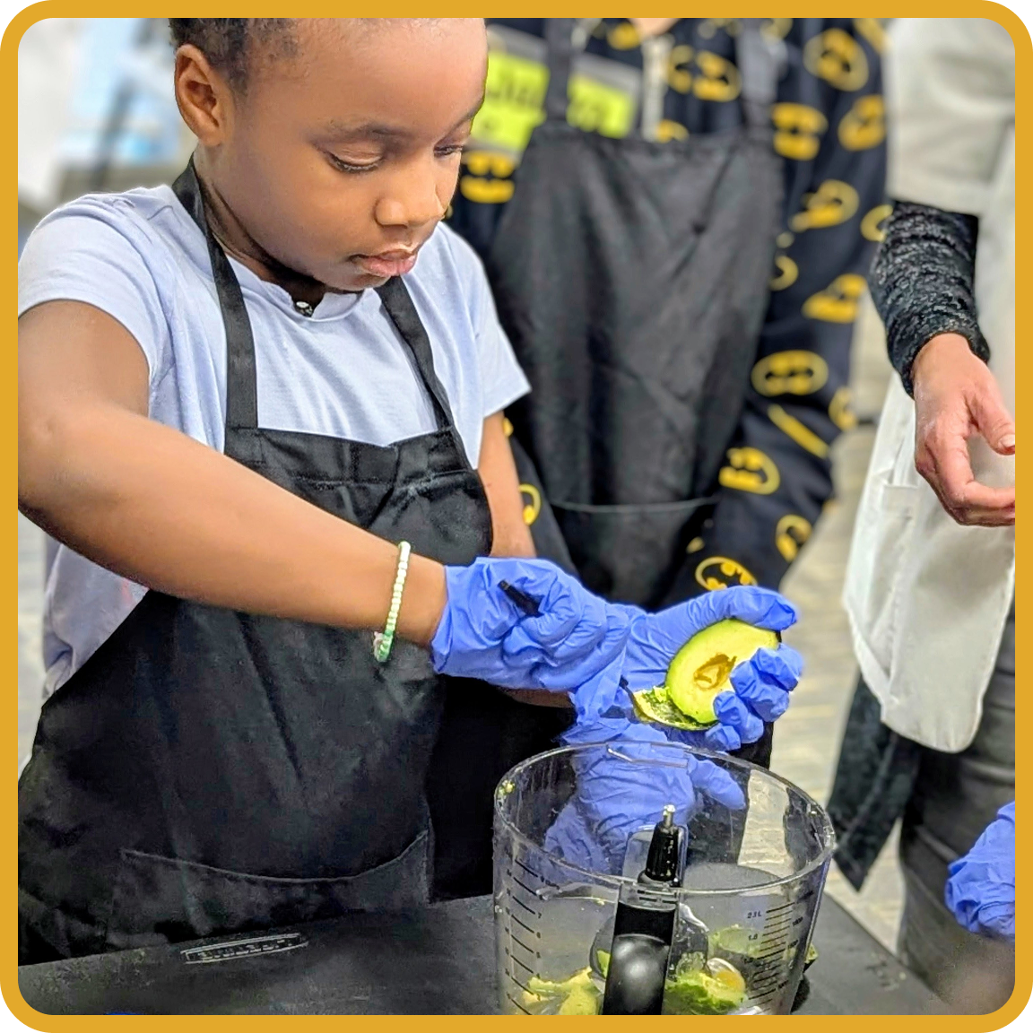 Students prepare fresh foods they have grown while discovering how food, science, and creativity come together.